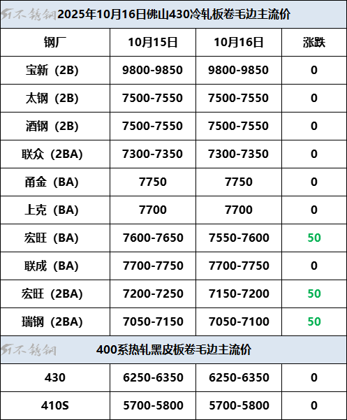 - 【51bxg】佛山市场201/304日评:304午后借势期货反弹促成交,201也弹回高位!!(2025年10月16日)